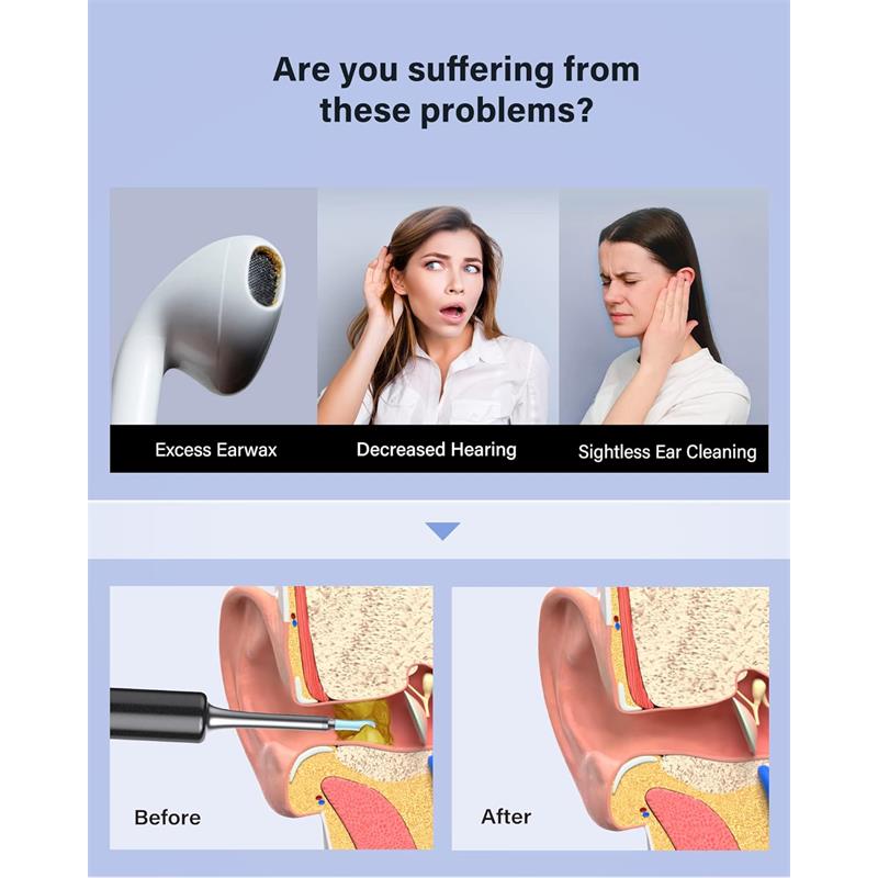 BEBIRD T5 3MP KAMERA 3.5MM LENS ŞARJLI WIFI GÖRÜNTÜLÜ KULAK TEMİZLEYİCİ SİYAH RENK